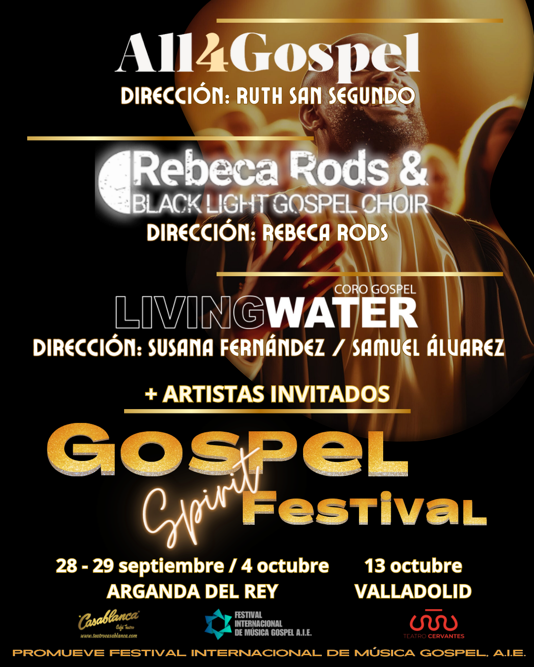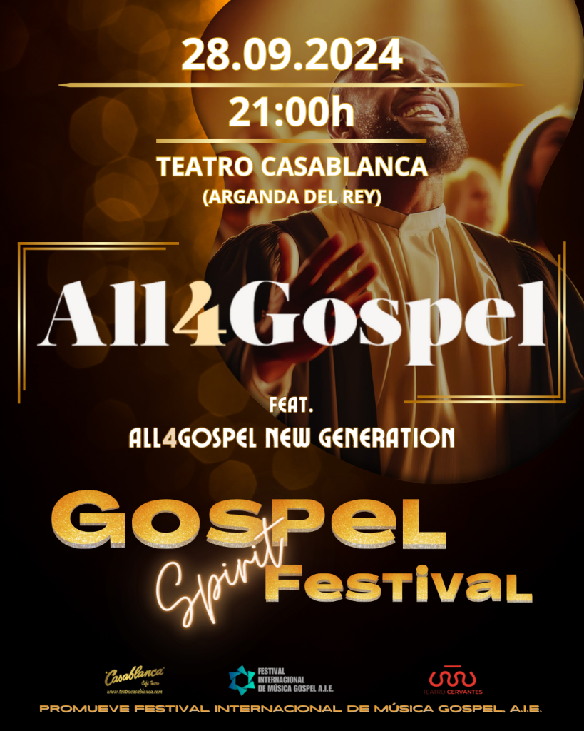 ¡Llega a España GOSPEL SPIRIT FESTIVAL! Una oportunidad única para disfrutar de los espectaculares directos de los mejores coros de nuestro país: All4Gospel, Black Light, Living Water…
